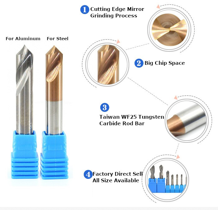 HRC55, 2 Flute Endmill, 90 Degree, Center Drill, for Steel Processing