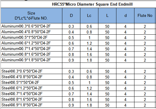 PREV : HRC55, 3 Flute, Solid Carbide Endmill, Micro Diameter,Square End, for Aluminum Processing