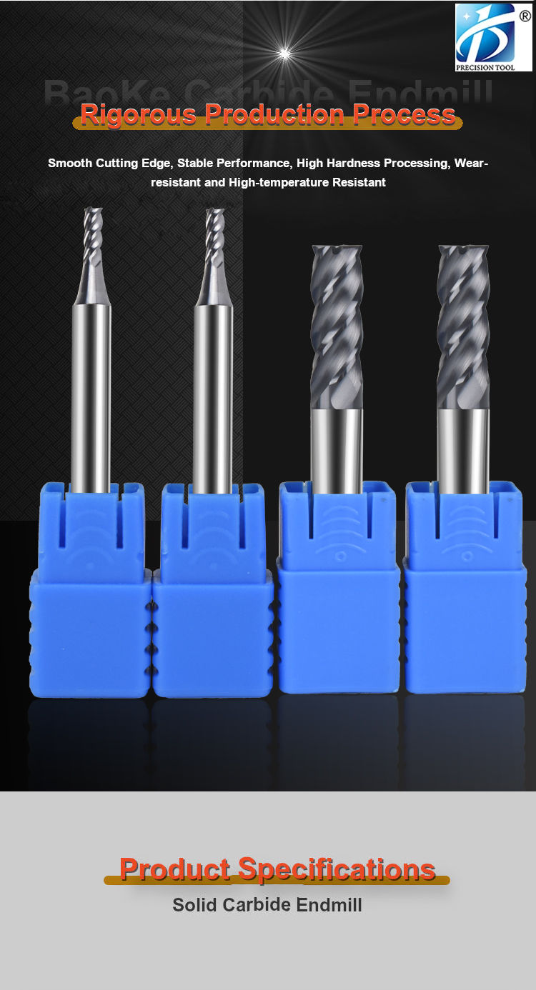 Baoke HRC55 Helical Custom End Mills Best Solid Carbide Endmill 4 Flutes End Mill CNC Square for Mold Steel Hard Engraving Milling Left Right Hand
